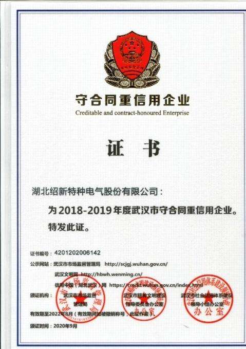 • 湖北省“重合同守信用企業證書”