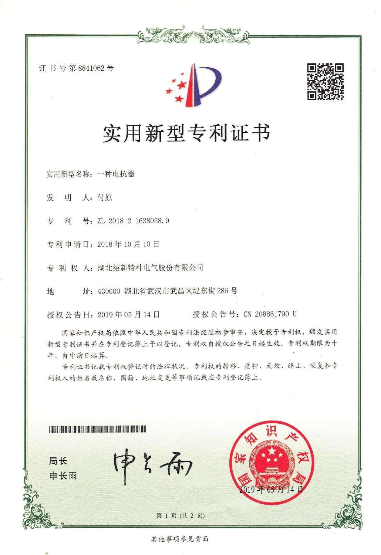• 專利證書